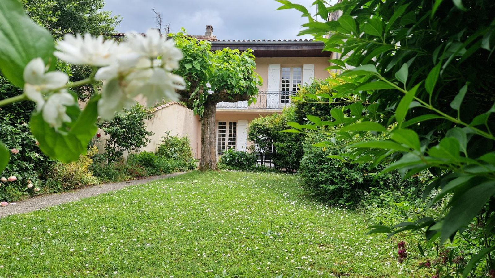 Passez le portail, vous serez immédiatement charmés par le jardin arboré et la sérénité qui s'en dégage.