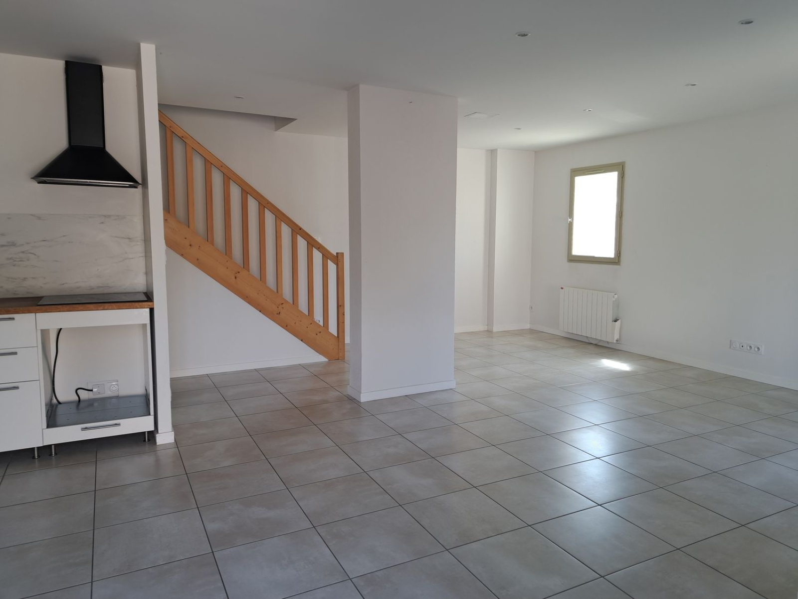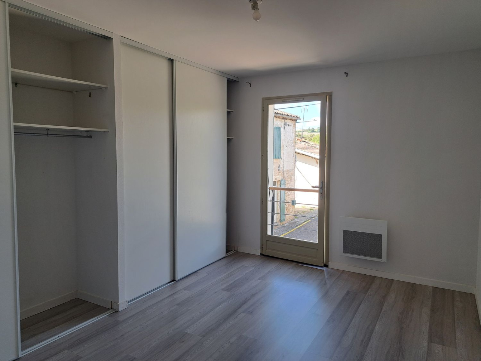 Au rez-de-chaussée : une pièce de vie lumineuse et chaleureuse, un WC et des rangements pratiques. À l’étage : un palier distribue deux grandes chambres, dont une équipée de grands placards, ainsi qu’une salle d’eau.